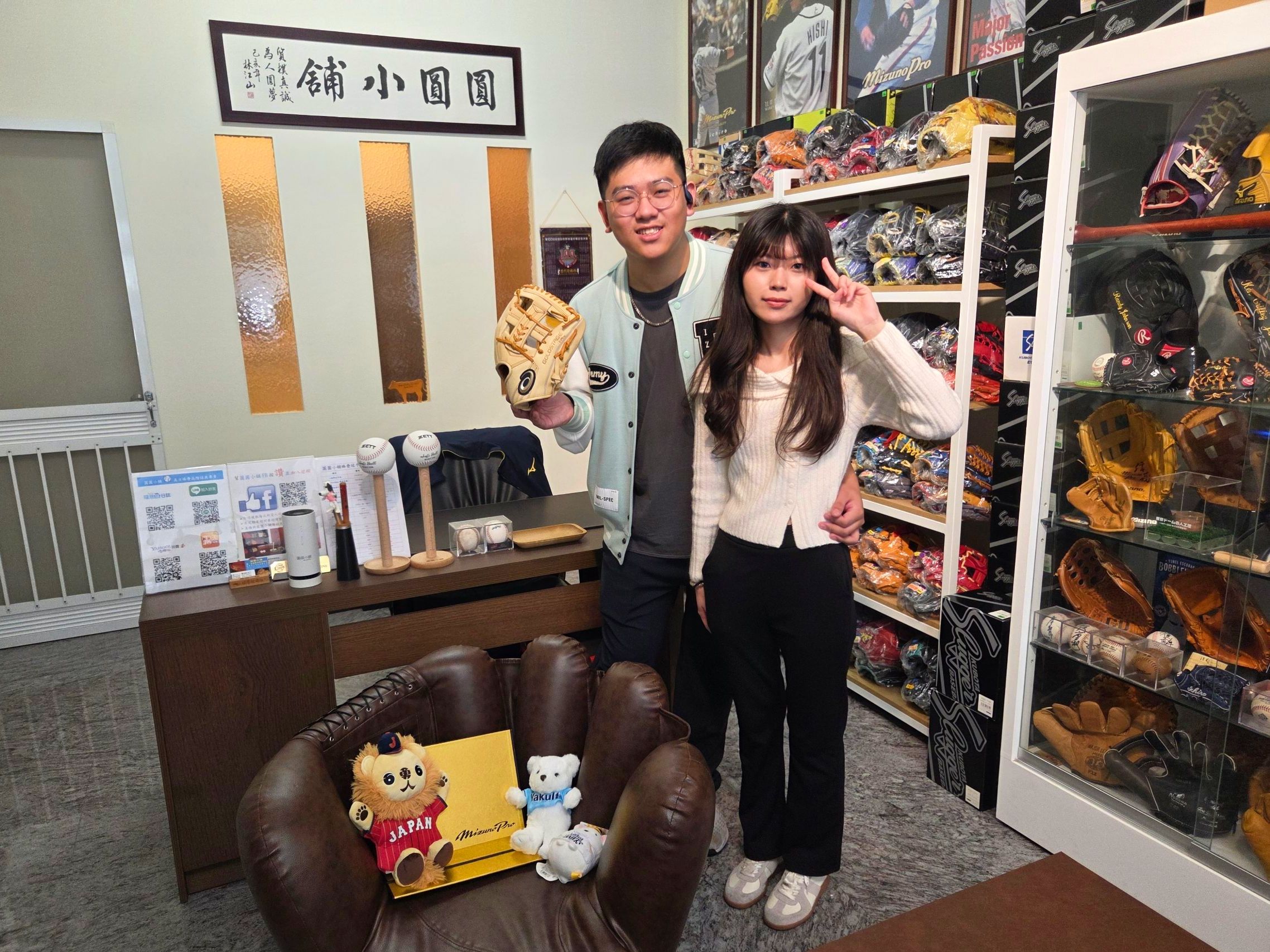 整個手套選購過程其實聊得十分愉快,Willy從高中就遠赴美國Kansas就讀,後來也在西雅圖念大學,所以圓圓也跟他聊了不少美國的棒球文化、看球心得等;加上他也是商學院出身就有更多話匣子可以開,真的是聊得不亦樂乎,圓圓很開心可以認識到這麼對棒球有熱情、而且這麼有禮貌的陽光男孩哦