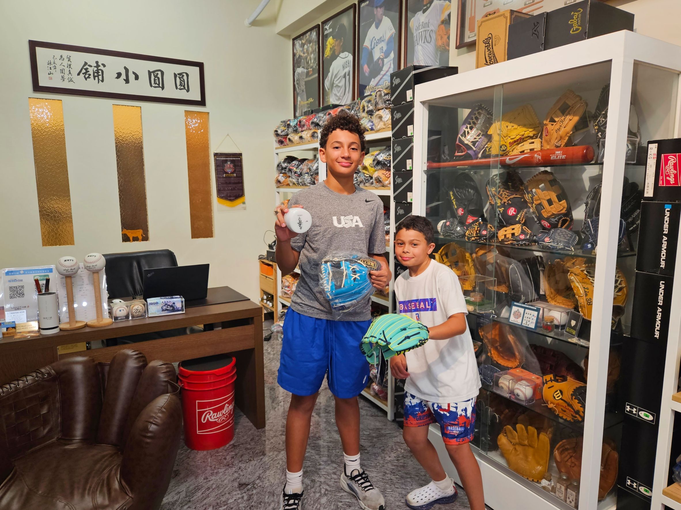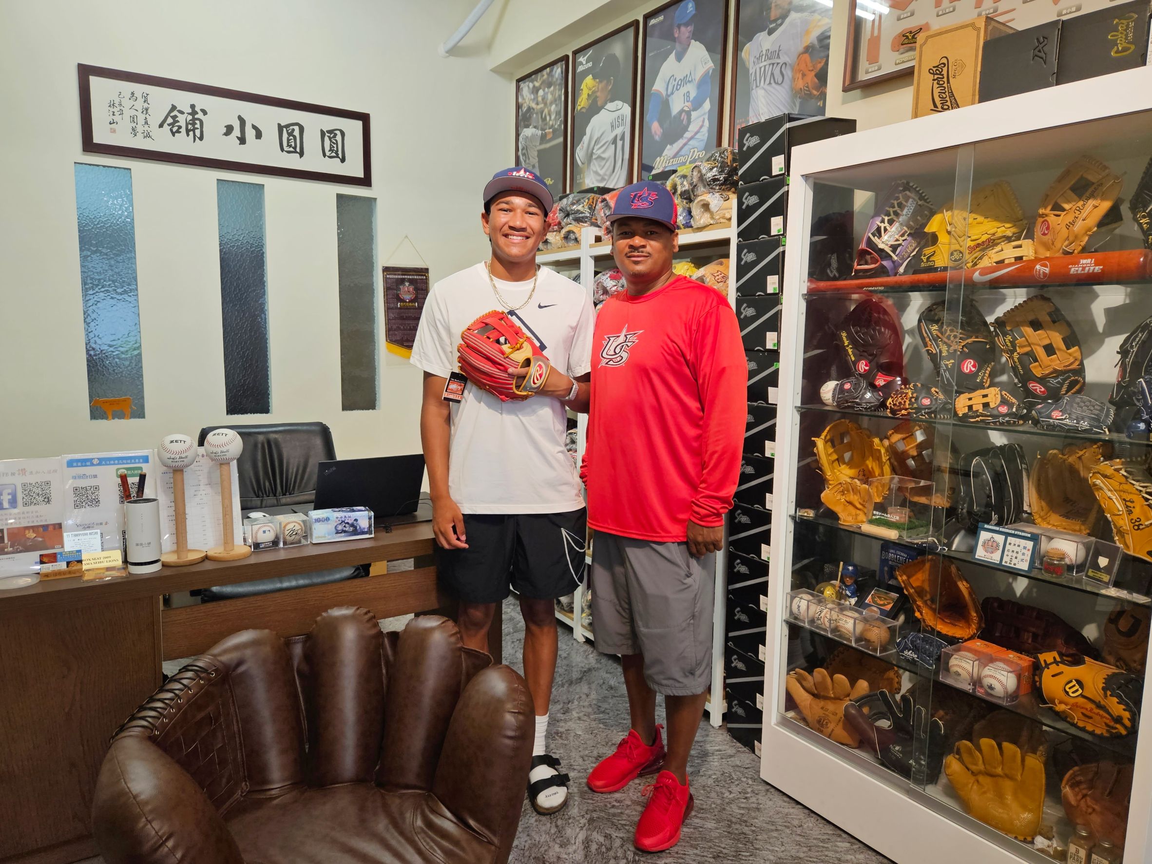 這次圓圓和U12各國來訪球友中聊得最開心的,大概就是美國隊了,因為來訪的親友團住紐約,圓圓很開心地和他們聊起之前去Yankee Stadium及citi field看球的經歷,也聊了之前去美國參觀的一些球具店,整個很有共鳴,不知道是不是因為這樣最後結帳時還給我一筆還不錯的小費XD
